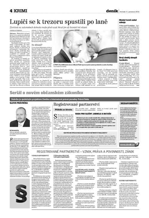 - Partner má právo odepřít výpověď jako svědek v rámci trestního řízení (§ 100 zákona č. 141/1961 Sb., trestní řád).